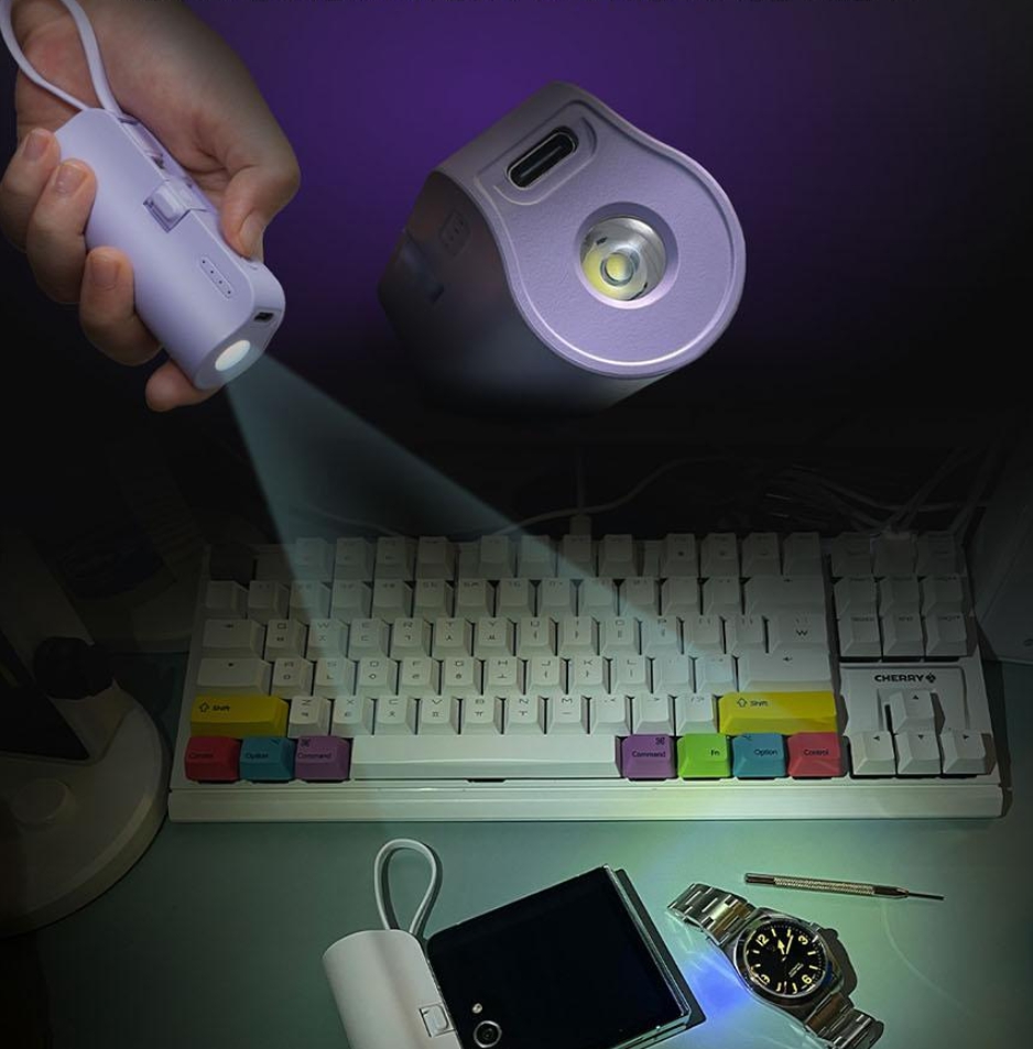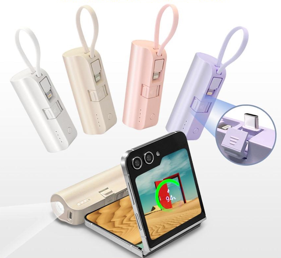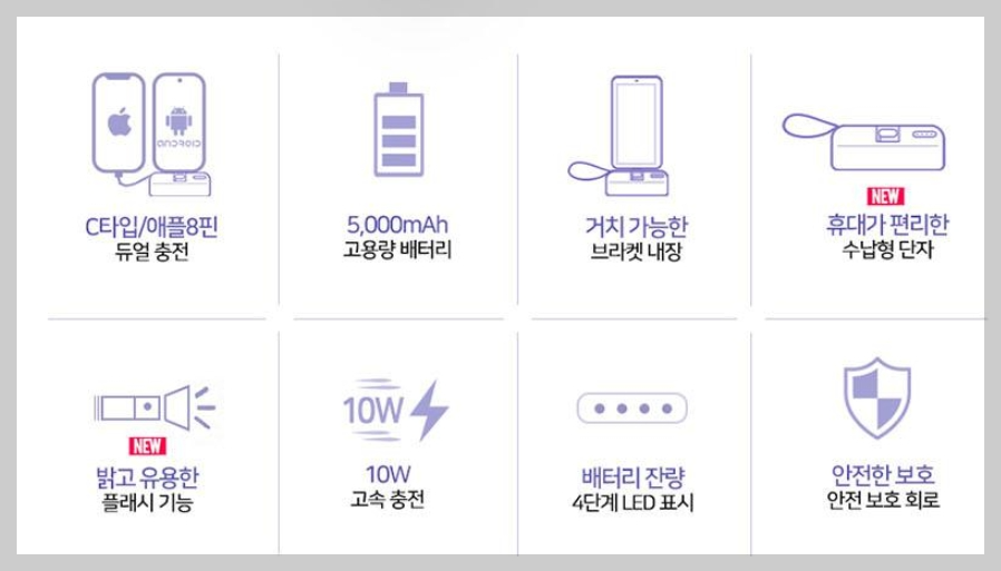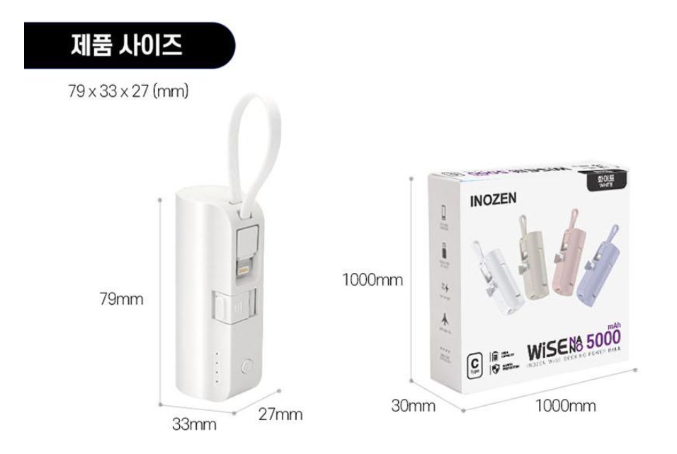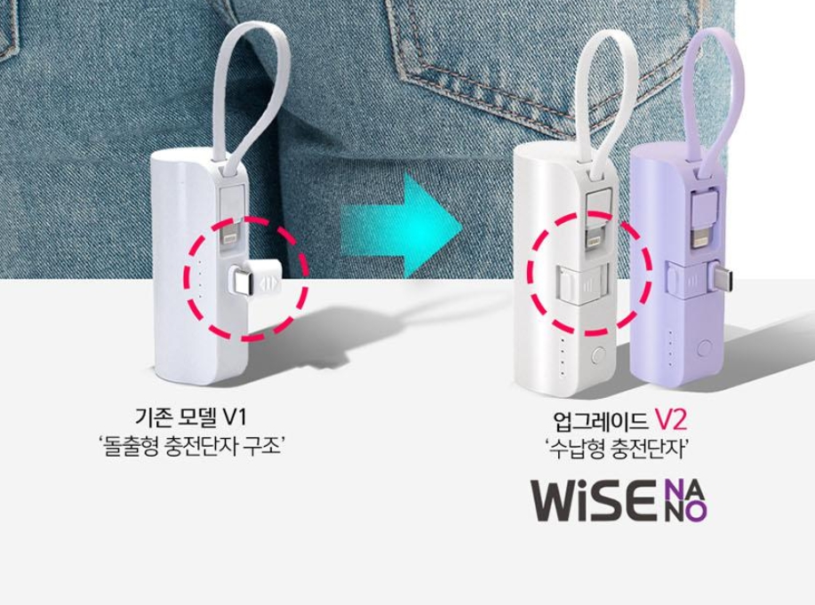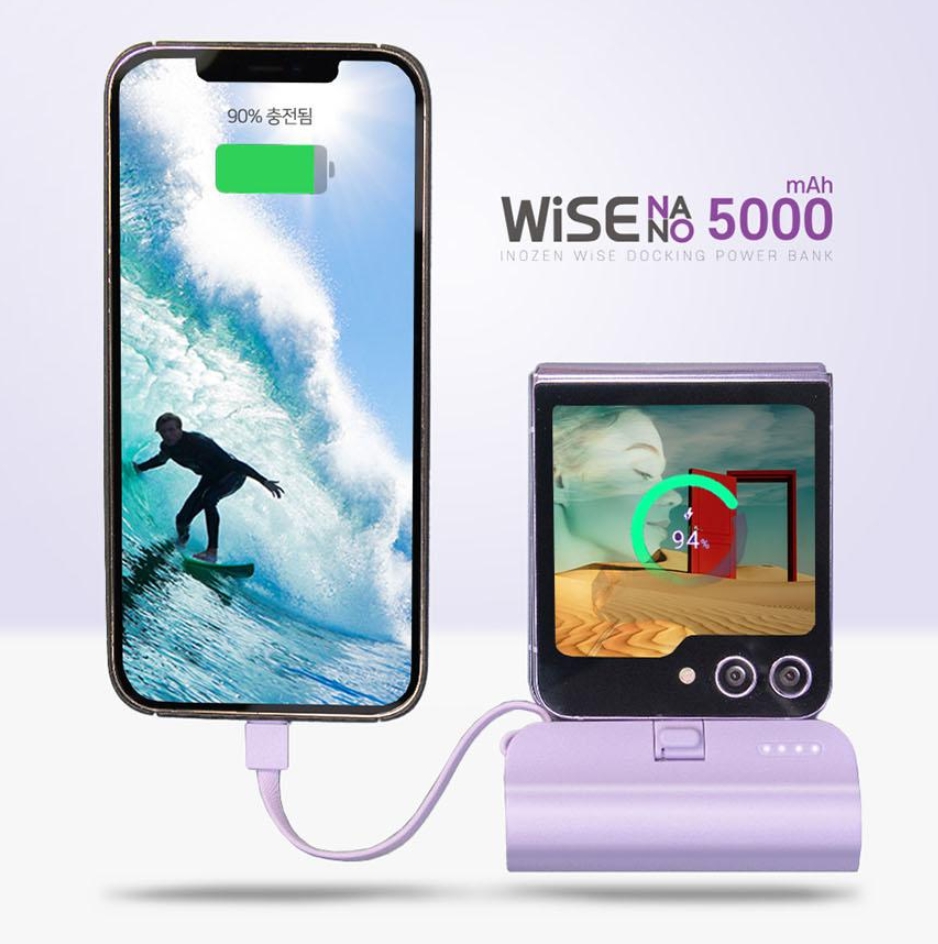 와이즈 나노 보조배터리는 수납단자, 플래시 내장,C타입/8핀 고속충전 미니 도킹형 보조배터리입니다.