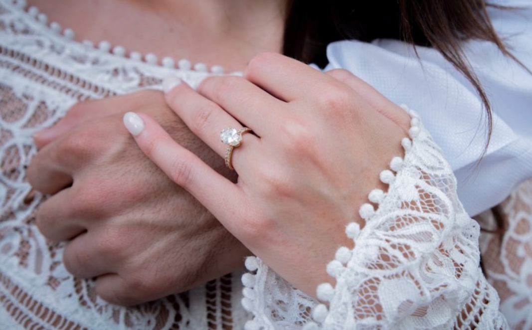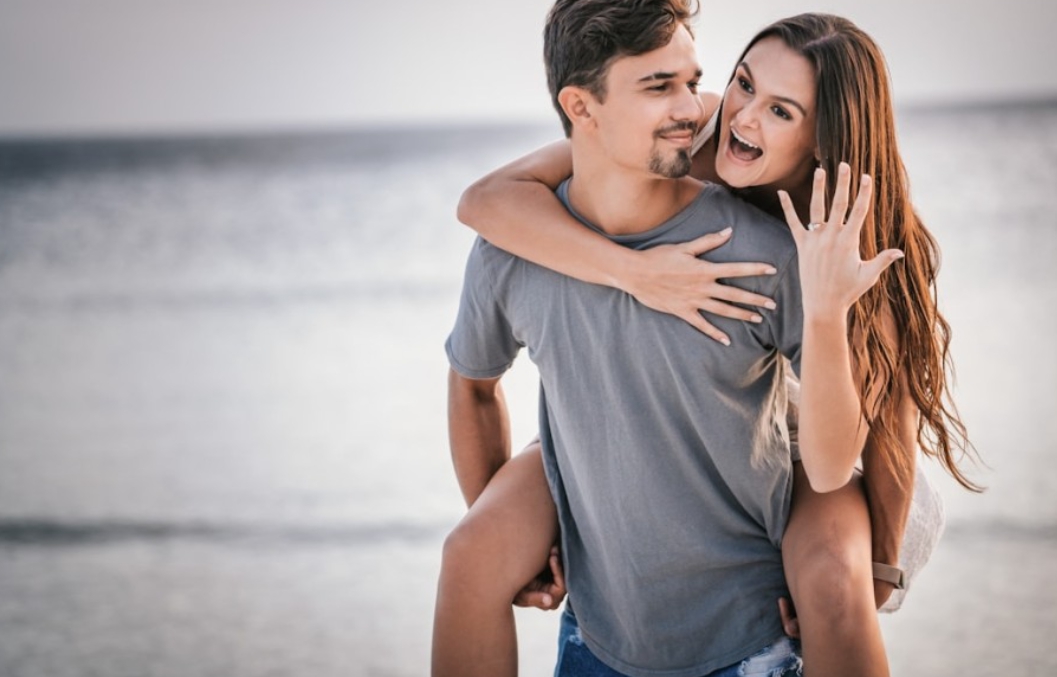 He proposed to her during a romantic beach picnic, and she tearfully accepted his engagement ring.