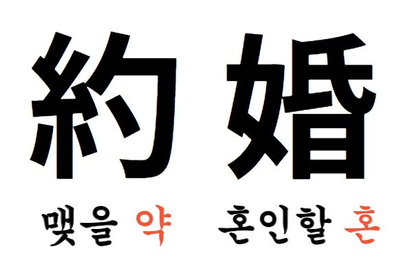약혼은 한자로  [ 맺을 약 約  혼인할 혼 婚 ] 으로 쓰이며,   쌍방(雙方)이 서로 혼인(婚姻)하기를 약속(約束)함을 뜻합니다.