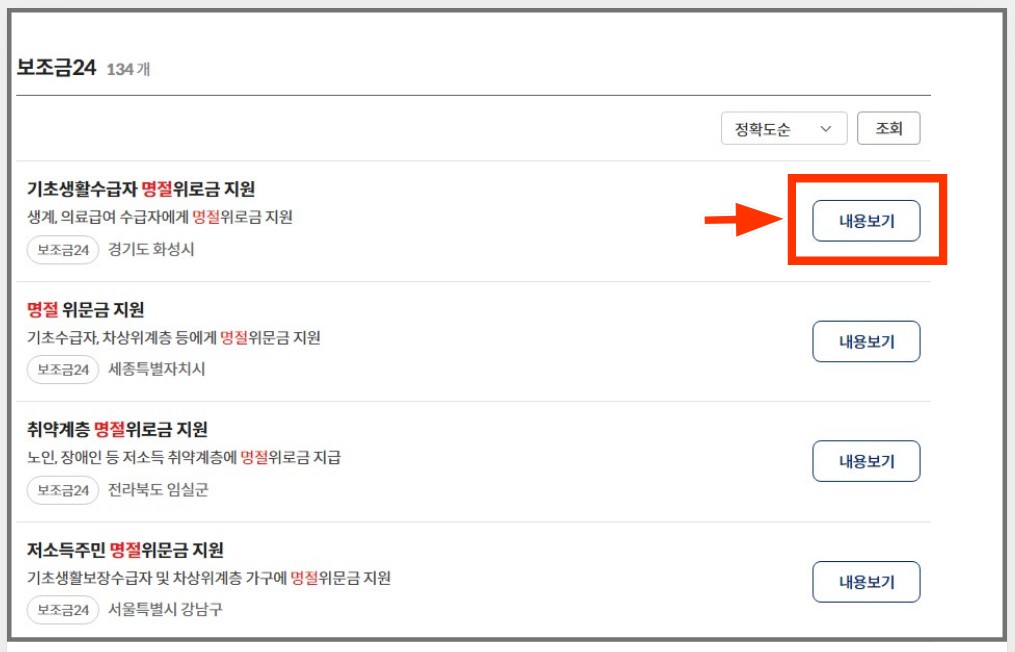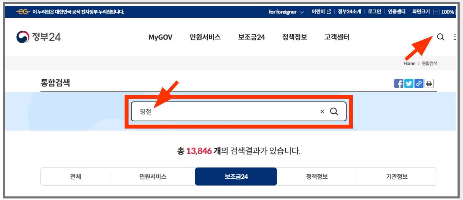 추석명절지원금 대상 조회하기
