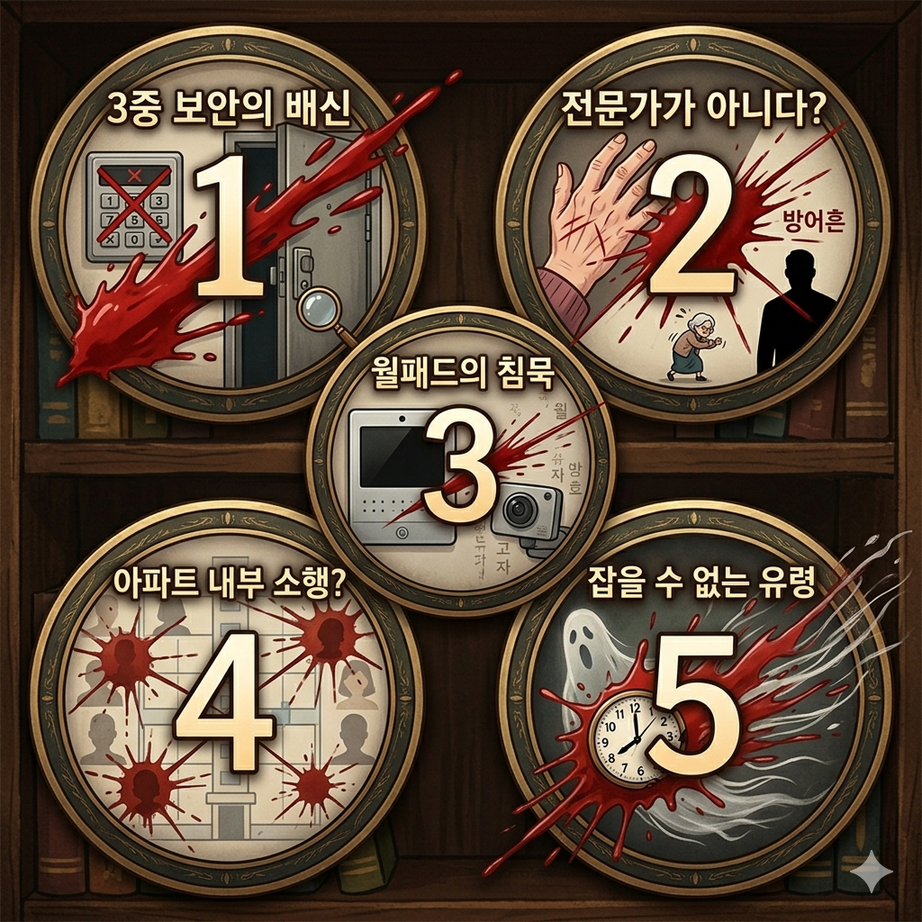 당시 이 아파트는 초인종을 누르면 방문자의 얼굴이 찍히는 최신식 '월패드' 시스템이었습니다. 하지만 사건 당일, 초인종을 누른 기록은 단 한 건도 없었습니다. 현관 도어록을 강제로 연 흔적도, 비밀번호를 누른 로그 기록도 전혀 없었죠.
